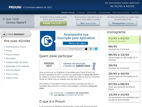 - Para que serve: Sistema on-line que reúne vagas de financiamento estudantil em cursos de graduação em universidades particulares.