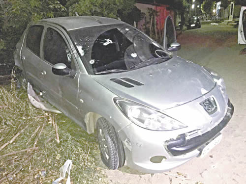 O automóvel de Cássia Holanda Nepomuceno foi atingido por mais de 40 disparos (Foto: Reprodução)