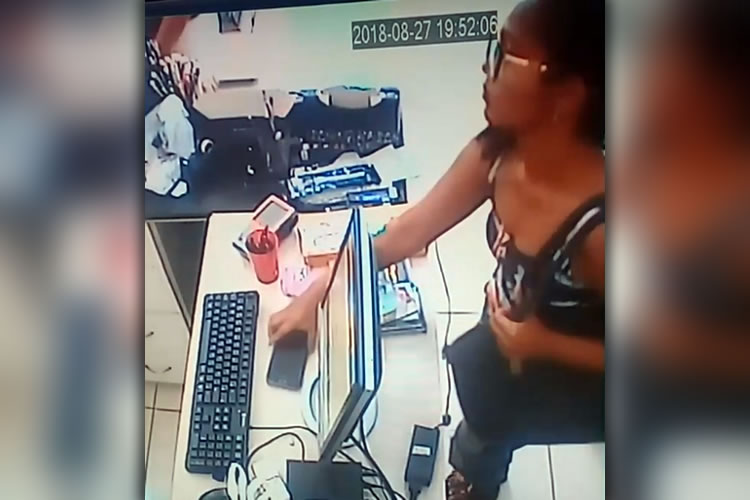 Provavelmente, ela já tinha planejado furtar o aparelho celular JS de cor preta da funcionária do caixa o qual estava em frente ao computador quando a suposta cliente afastou alguns papeis ao lado abrindo caminho para colocar sua mão numa ação característica de descuidistas. Já em contato com a funcionária, a acusada trama uma maneira de fazê-la dar as costas. Foi quando pediu para ver um colar que estava por trás da jovem que trabalha no caixa e esta se virou para apanhar.