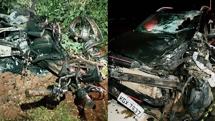 Partes do corpo de motoqueiro caem dentro de carro em Missão Velha e sua moto pegou fogo