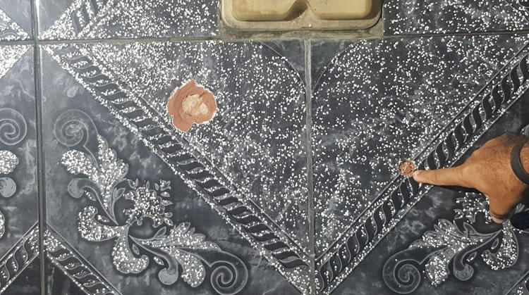 Marcas de tiros disparados contra a vítima, em Maracanaú. - Foto: Rafaela Duarte