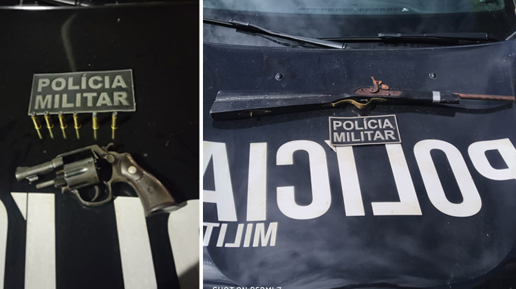 Revólver apreendido em Nova Olinda e a espingarda recolhida em Aurora. Fotos: Reprodução