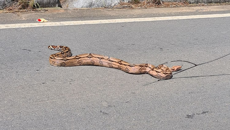 Uma jiboia foi encontrada na via entre os Municípios de Barbalha e Jardim, na região da Floresta do Araripe, neste sábado (10).